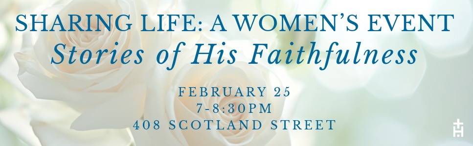 Join us for a cozy fireside evening of testimonies, wisdom, and hope as women share stories of God’s faithfulness. Come be encouraged and renewed. We will gather at Bonnie Gaylord's Home: 408 Scotland Street.